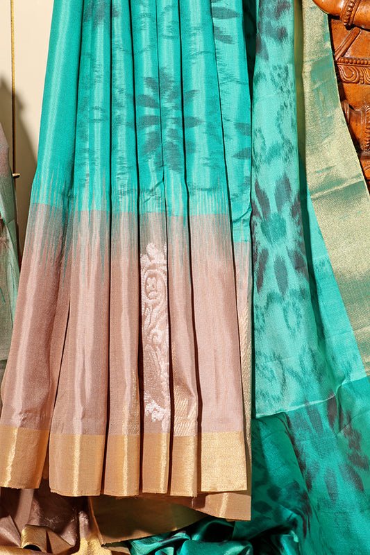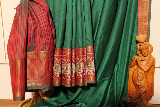 Bottle Green & Maroon Patola-Inspired Saree with Zari Accents 102