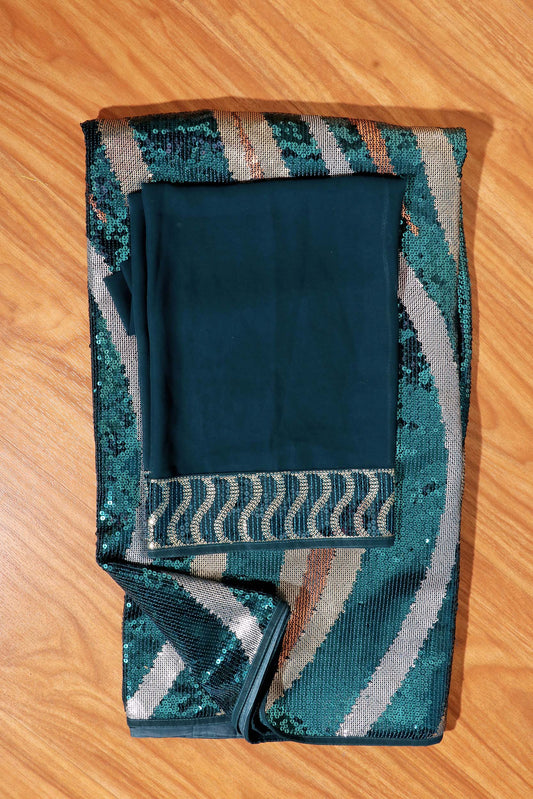 Celestial Glam – Teal Green Sequin Party Pure Georgette Saree 013