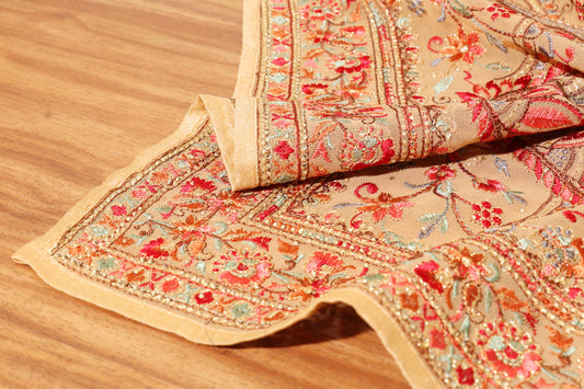 Champagne Beige Kashmiri Embroidered Georgette Saree with Gold Accents 090