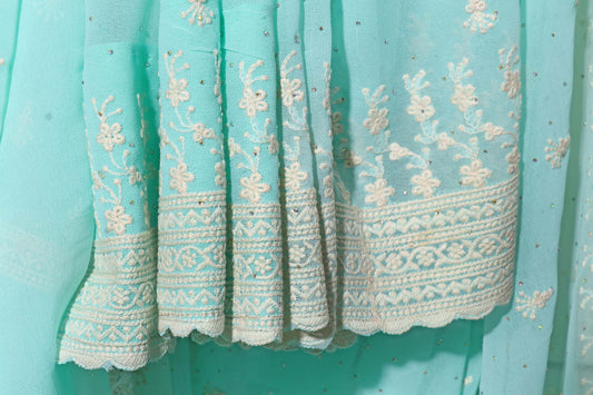 Pista Green Lucknowi Embroidered Chiffon Saree with Scalloped Detailing 103