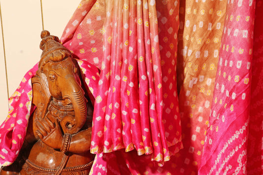Pink and Mustard Shaded Bandhani Saree with Rich Gold Pallu 117