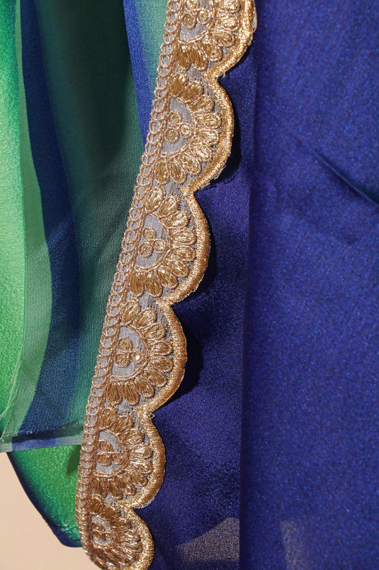 Ocean Breeze Ombre Saree with Scalloped Zari Lace 073