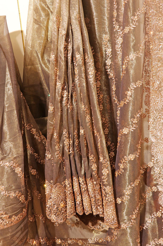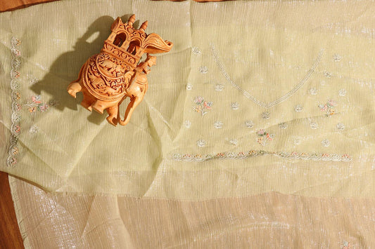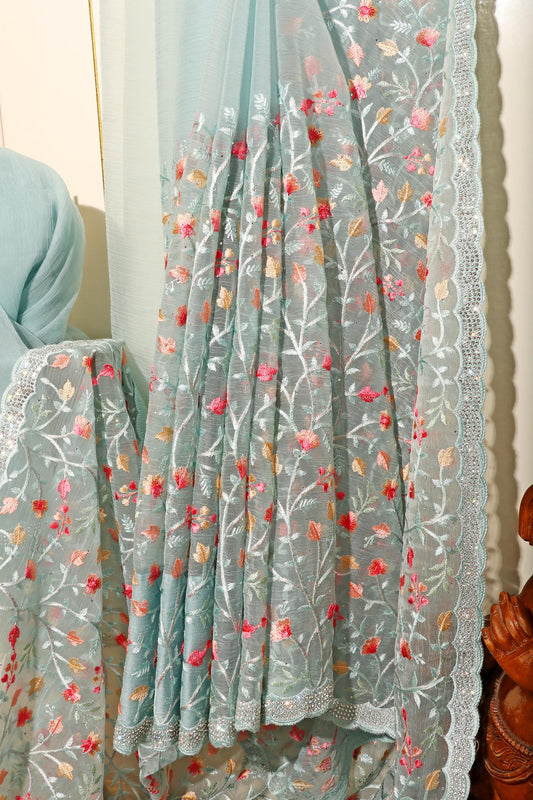 Pista Whisper Chiffon Tissue Saree with Pastel Embroidery & Swarovski Detail 078