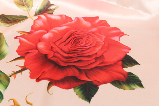 Pale Beige Satin Silk Saree with Sabyasachi-Inspired Roses & Contrast Khadi Silk Blouse 091