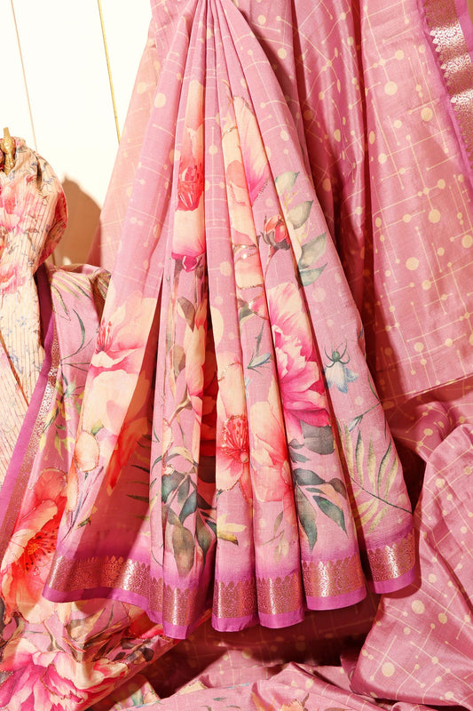 Phoolvati – Mauve Soft Silk Saree with Floral Digital Print 144