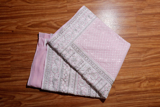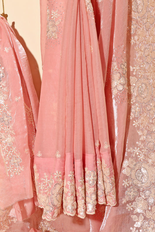 Rose Luxe – Embroidered Mirror & Crystal Pure Chiffon Saree 012