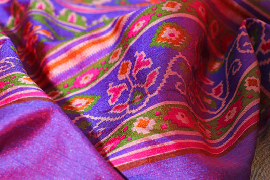 Purple and Rani Pink Printed Patola Saree with Thread Zari Border 107