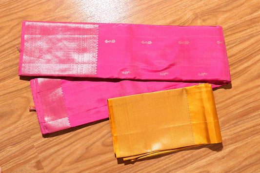Rose Pink & Mustard Yellow Kanjeevaram Silk Saree 051