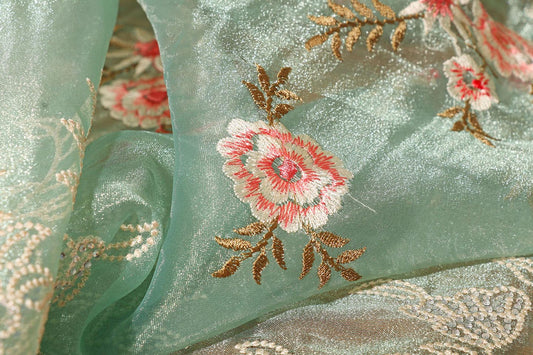 Sage Green Tissue Organza Saree with Pearl & Swarovski Border 074