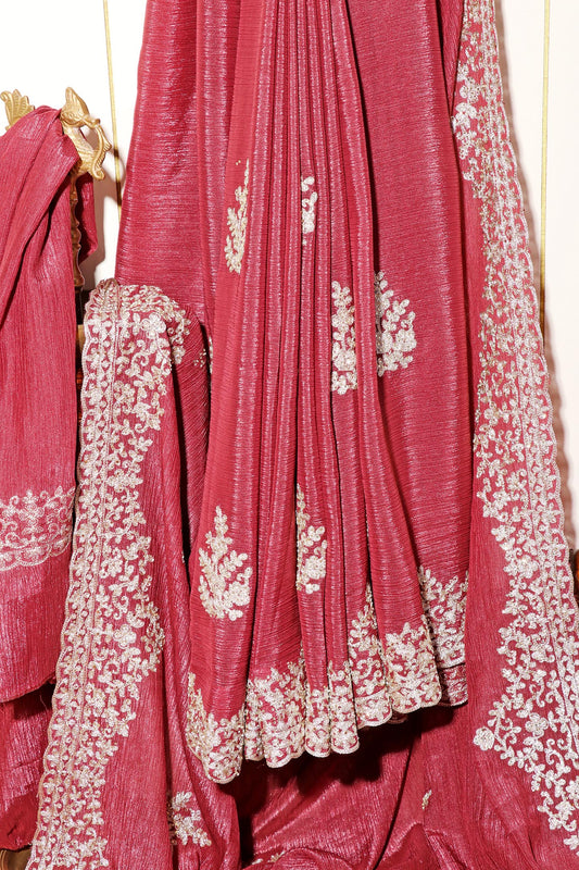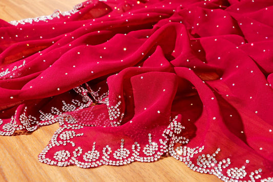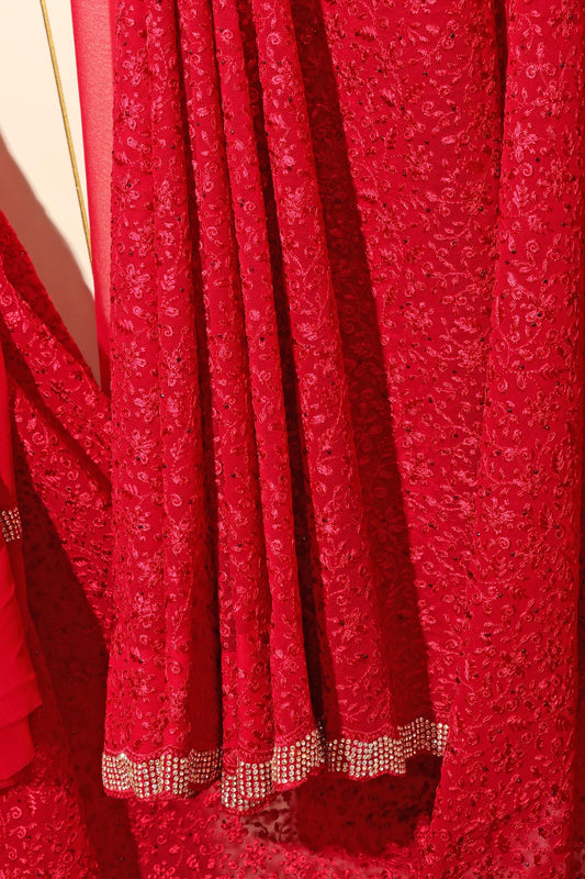 Scarlet Elegance – Crystal & Sequin Chiffon Saree 002