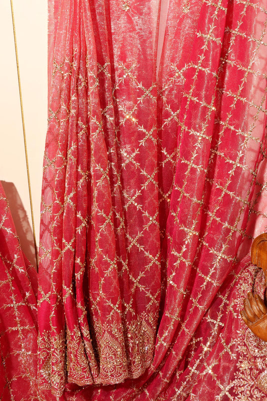 Saanjh - A Crimson Sheer Organza with a Zari Border 157