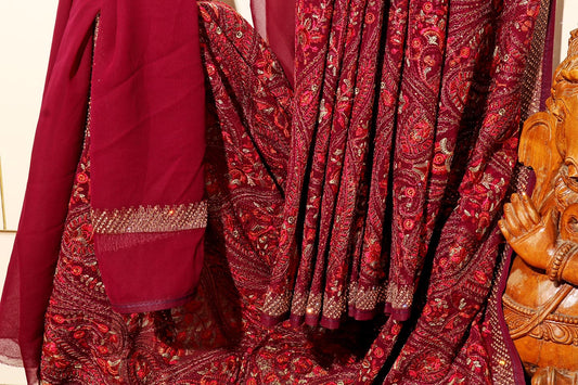 Ruhani – Crimson Red Georgette Saree with Swarovski Detailing 131