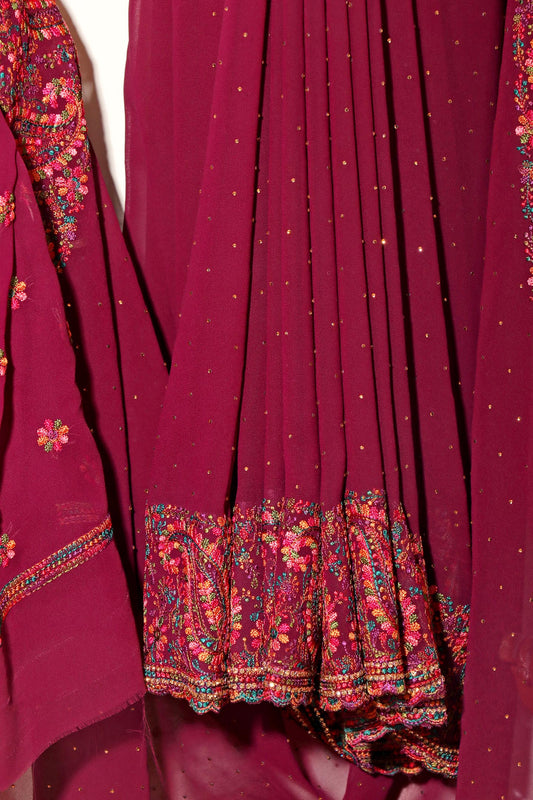 Royal Plum Crystal Chiffon Saree (New 311-R-306)