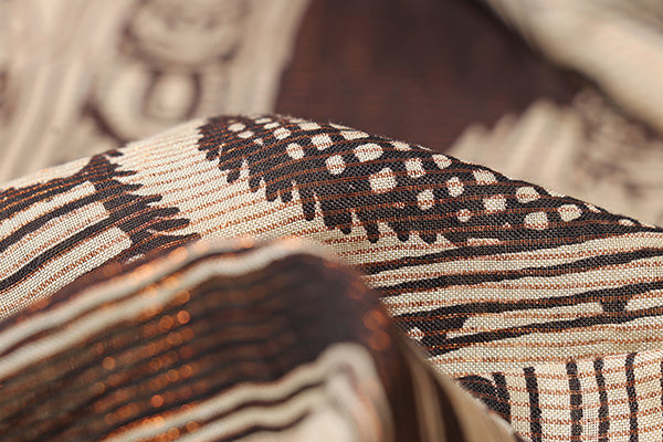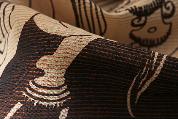 Celebrate the essence of Indian mythology and folk art with Mythical Madhubani, a stunning hand-painted pen kalamkari saree adorned with intricate Madhubani motifs. The black and sepia illustrations depict traditional scenes featuring divine figures, flora, and fauna, set against a rich cream base and enhanced with a contrasting black and bronze zari border. This saree is not just an outfit—it’s a work of art.